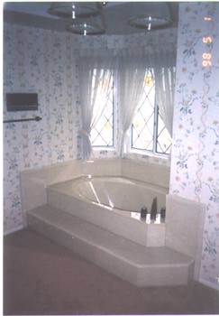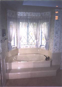 Here are two views of a typical tub replacement, circa 1970's, 1980's. Tub, bordering, and step have an O.G. edge.