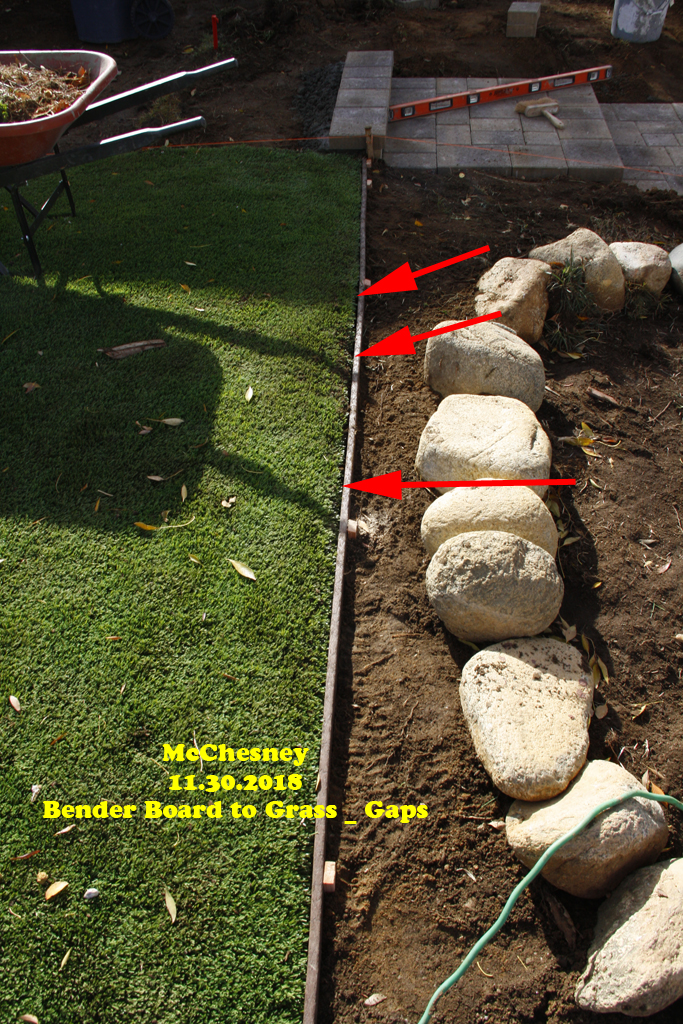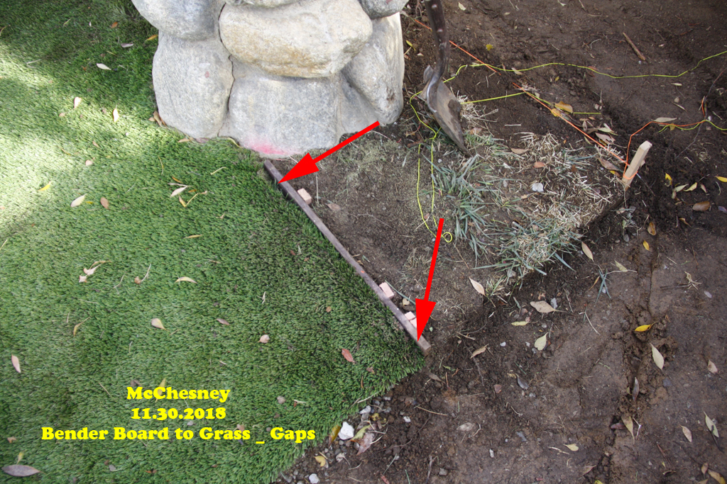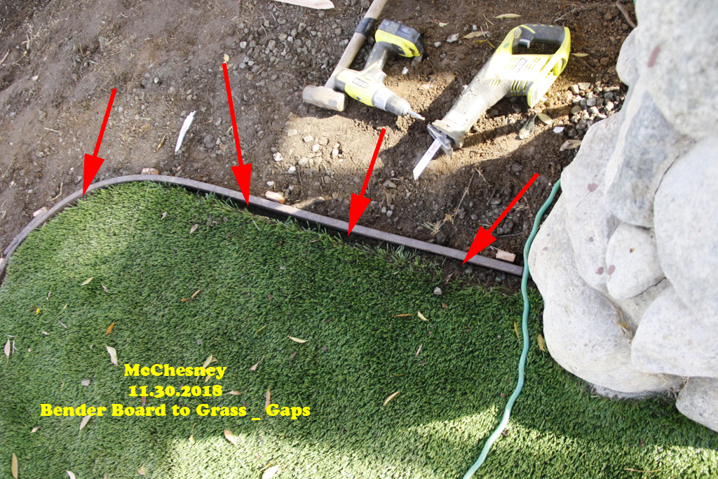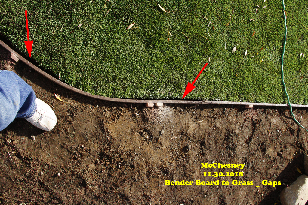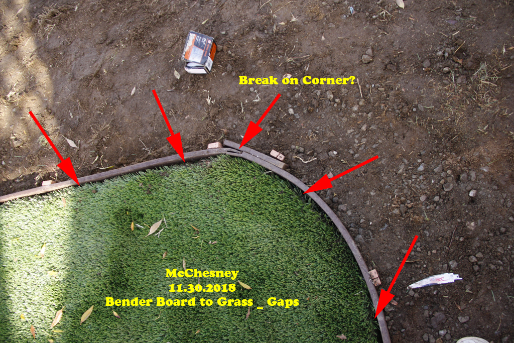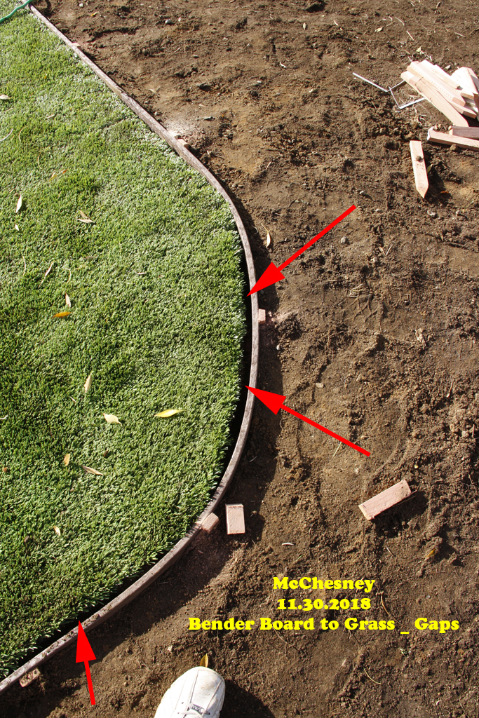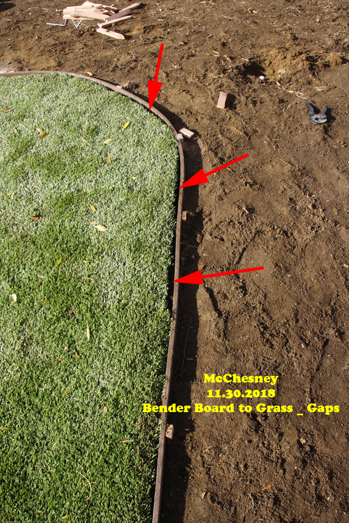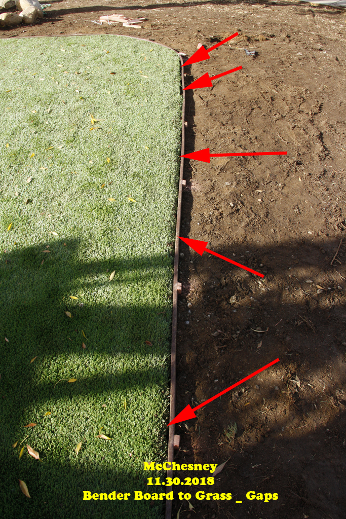 The transition from Grass to Bender Board is extremely irregular and there are very evident gaps.