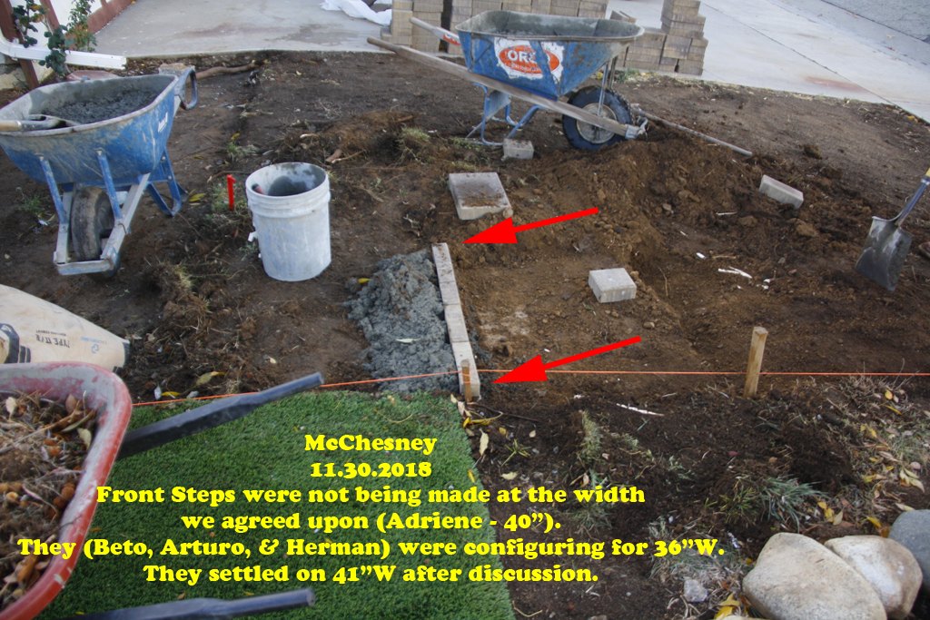 Adriene must not have communicated with Arturo, Beto, or Herman that we had agreed upon 40"W Steps out the Front of the House.